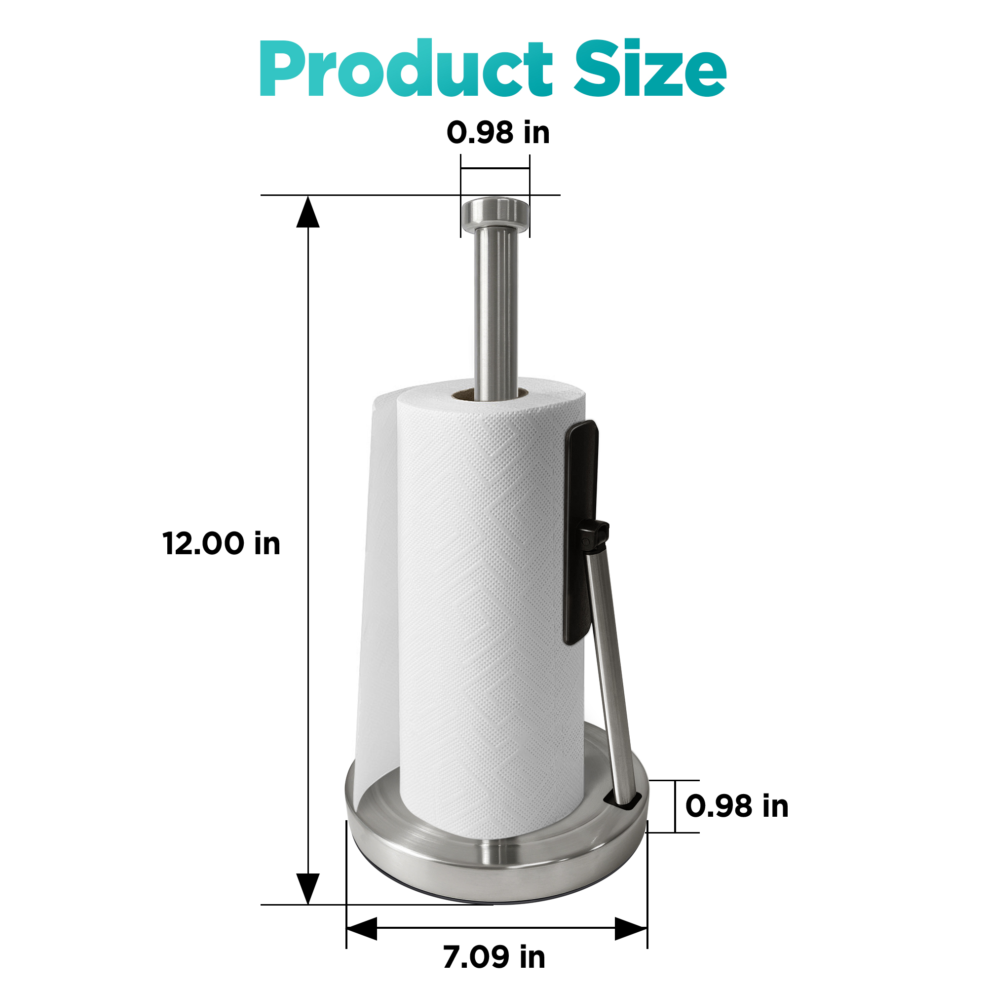 Freestanding Silver Countertop Kitchen Paper Towel Holder, with Tension Arm, Storage and Tidy