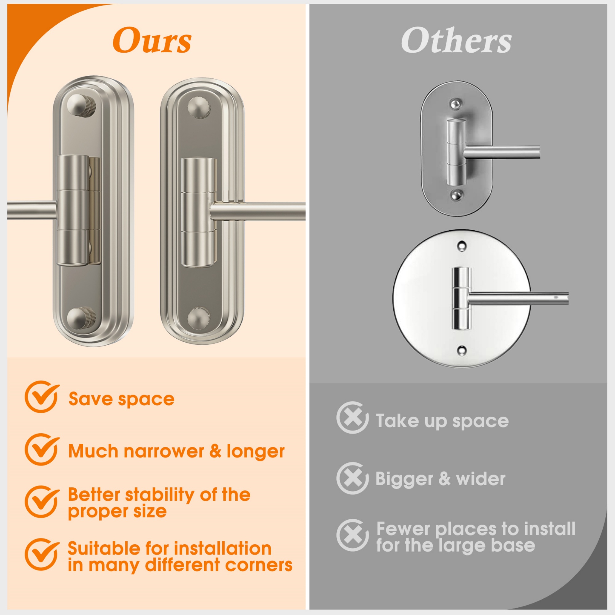This wall-mounted makeup mirror is a perfect addition to your bathroom or dressing area. It features a unique long, narrow base design that saves space compared to traditional round or wide bases. The mirror offers a 1X normal view on one side and a 10X magnifying view on the other, allowing you to see every detail clearly. With a 360° swivel and extendable arm, you can easily adjust the mirror to your desired position without bending over. The extendable arm can reach up to 12 inches, providing flexibility in use. Installation is straightforward with all necessary hardware included, and the mirror can be folded to save space when not in use.