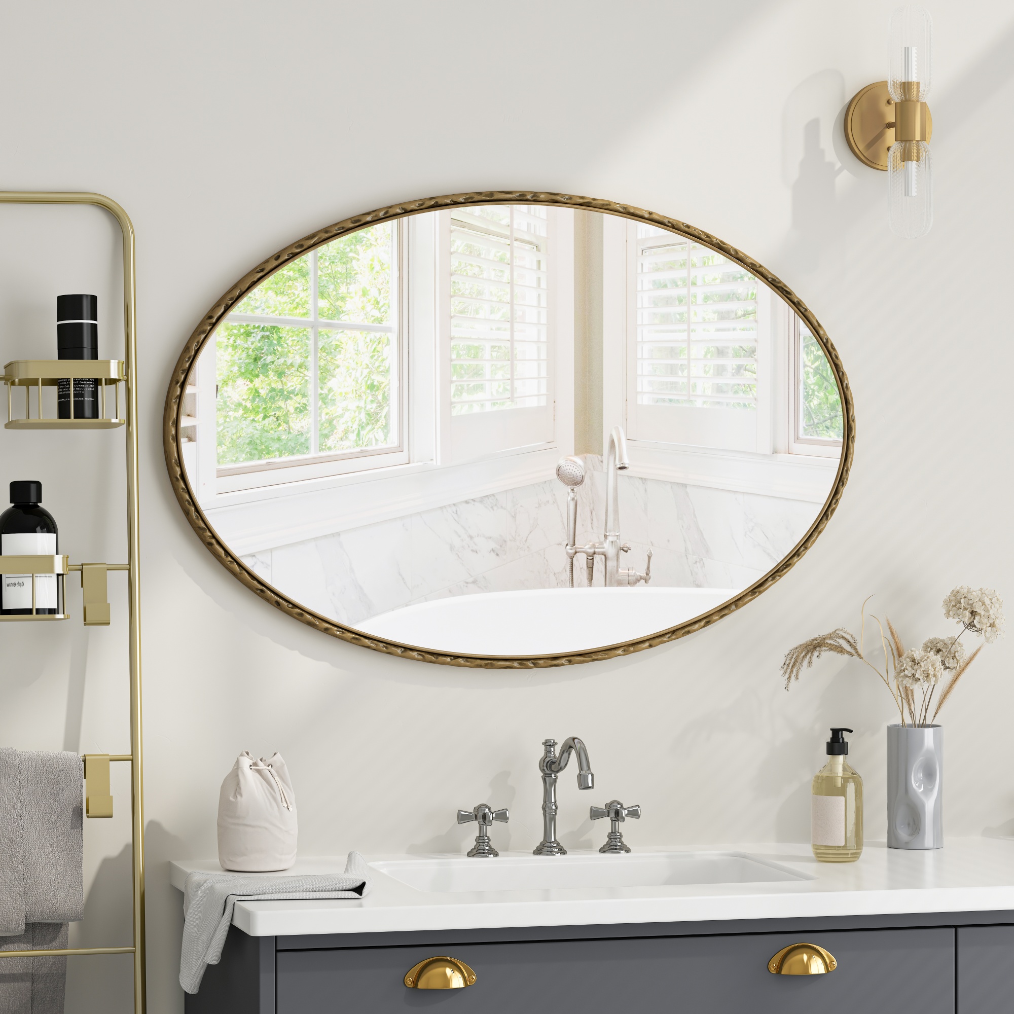 Retro and Nostalgic 25.6 in. W x 39.4 in. H Oval Thin Framed Wall Mount Bathroom Vanity Mirror in GoldRetro and Nostalgic 25.6 in. W x 39.4 in. H Oval Thin Framed Wall Mount Bathroom Vanity Mirror in Gold