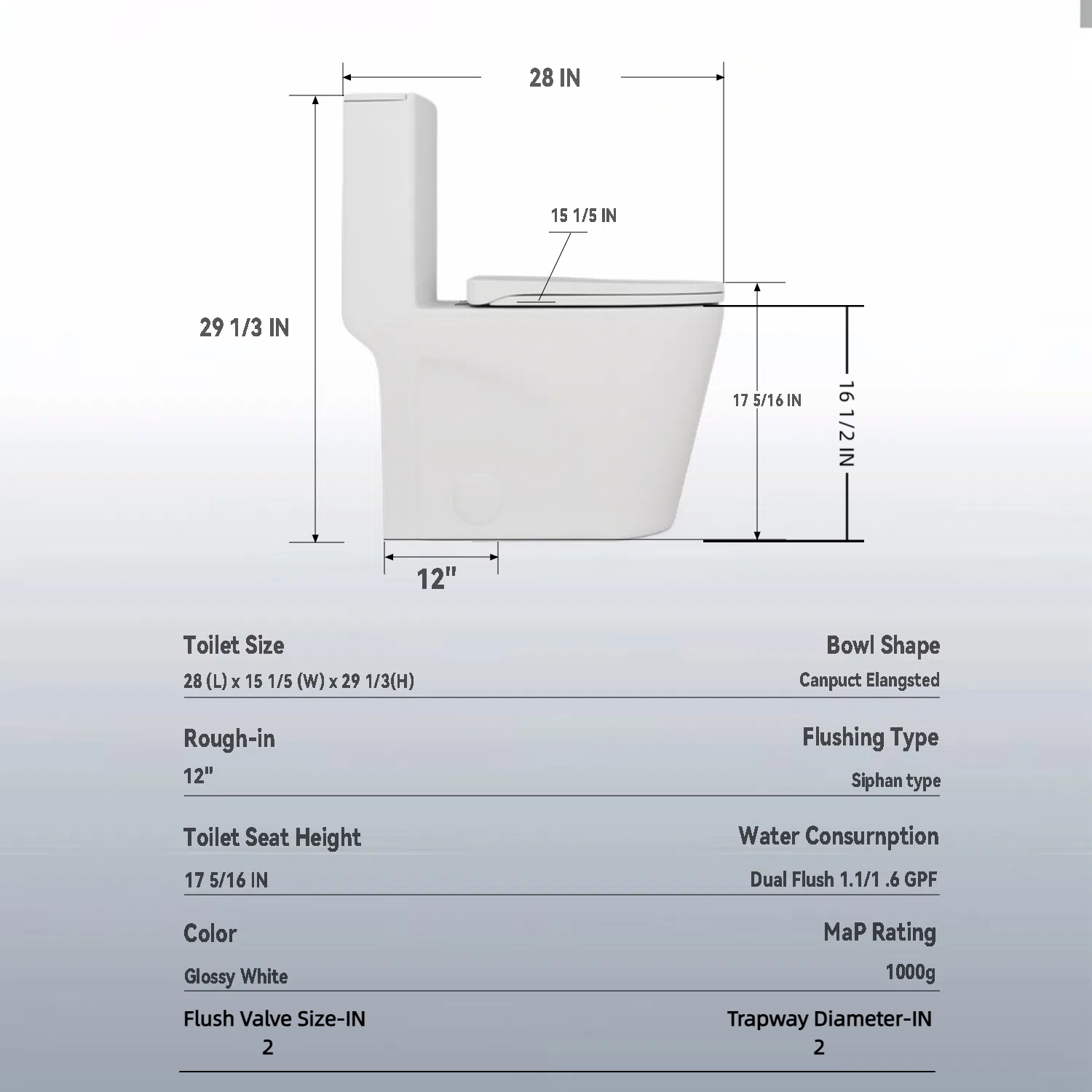 SRB001 12 inch floor-mounted 1-piece 1.1/1.6 GPF Dual Flush Elongated Toilet,Seat IncludedSRB001 12 inch floor-mounted 1-piece 1.1/1.6 GPF Dual Flush Elongated Toilet,Seat Included