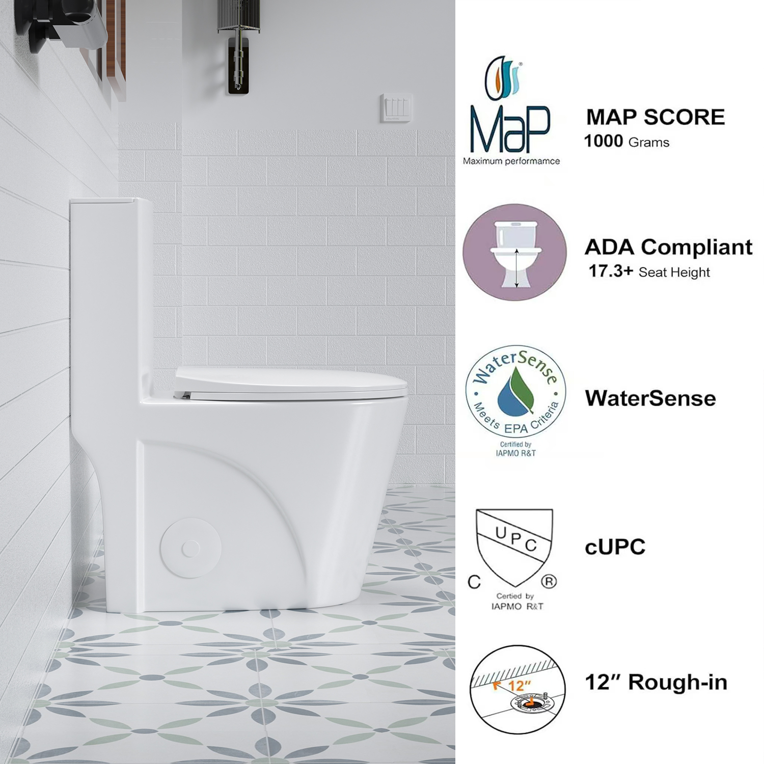 SRB001 12 inch floor-mounted 1-piece 1.1/1.6 GPF Dual Flush Elongated Toilet,Seat Included