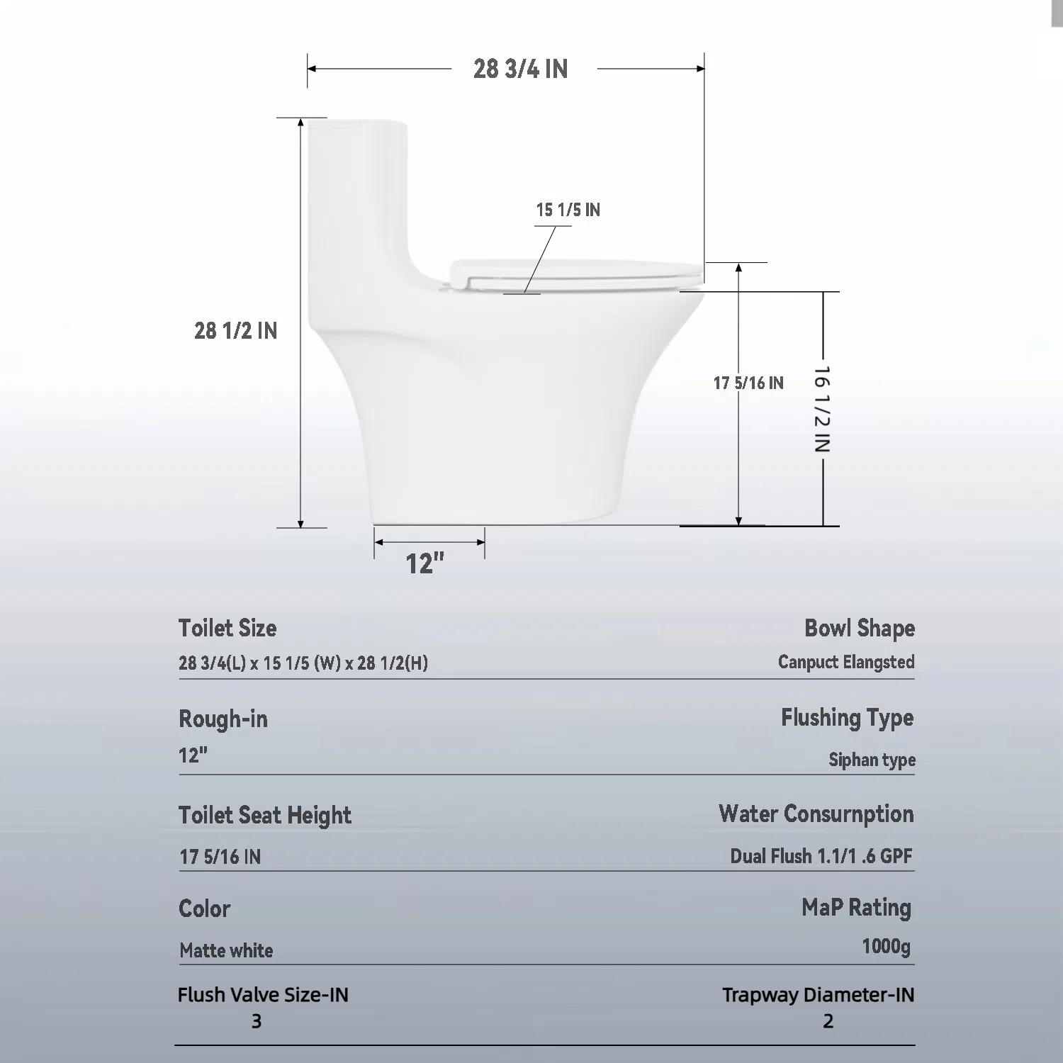 SRB002 12 inch floor-mounted 1-piece 1.1/1.6 GPF Dual Flush Elongated Toilet,Seat IncludedSRB002 12 inch floor-mounted 1-piece 1.1/1.6 GPF Dual Flush Elongated Toilet,Seat Included